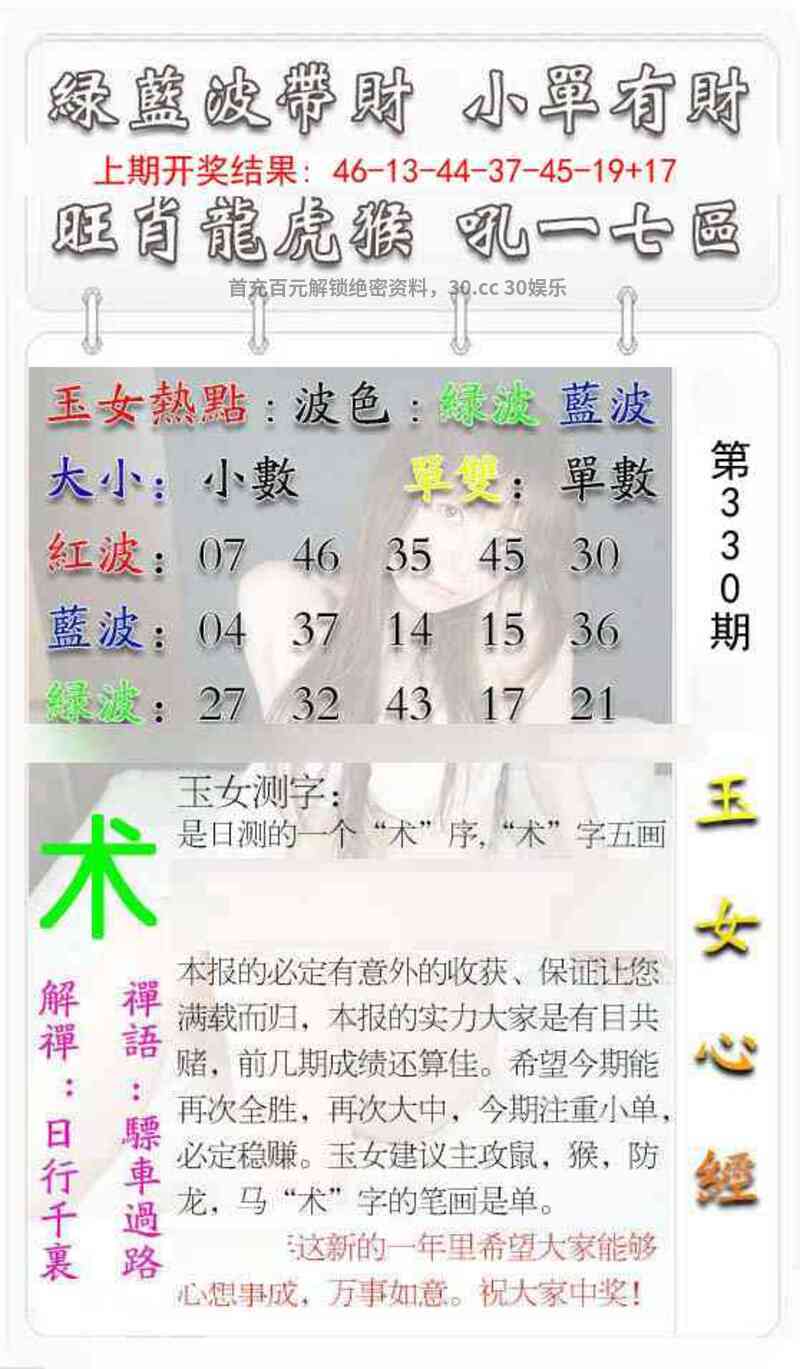 331期澳门彩票中心开龙26 波色:蓝波绿波 头数:123头 尾数:2346015尾 生肖:猴鸡牛龙羊马狗蛇鼠 平特:猴猴猴 主码:22,34,21,33,29,41 防码:26,35,36,32,37,18 |